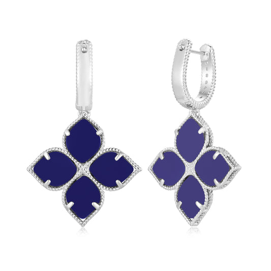 Suzy Levian Sterling Silver Blue Enamel White Cubic Zirconia Pave Flower Clover Hanging Earrings