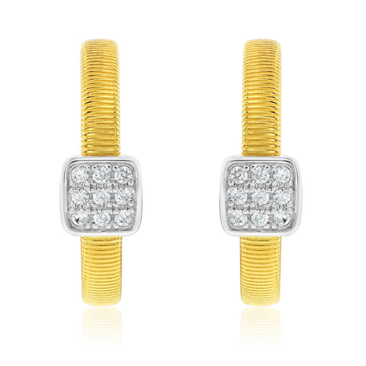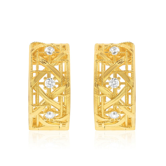 Suzy Levian Yellow Sterling Silver & White Cubic Zirconia Cutout Huggie Hoop Earrings