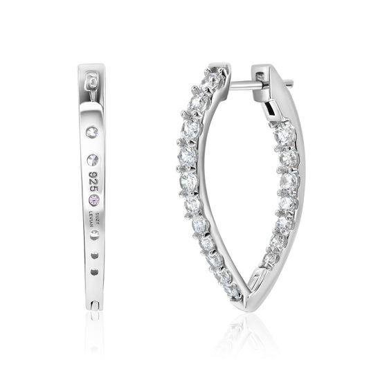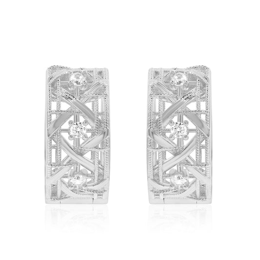Suzy Levian White Sterling Silver & White Cubic Zirconia Cutout Huggie Hoop Earrings