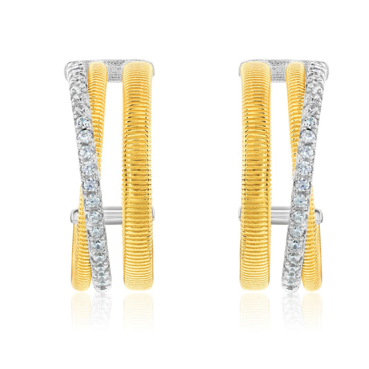 Suzy Levian Yellow Sterling Silver & Cubic Zirconia Triple Row Coil Huggie Hoop Earrings