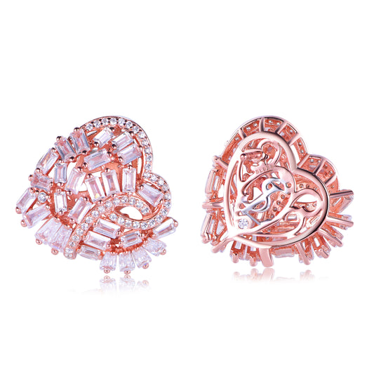 Suzy Levian Rose Sterling Silver White Cubic Zirconia Large Heart Cluster Earrings