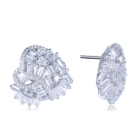 Suzy Levian White Sterling Silver White Cubic Zirconia Pave Curved Flower Earrings