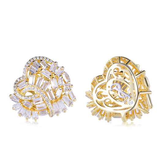 Suzy Levian Yellow Sterling Silver White Cubic Zirconia Large Heart Cluster Earrings