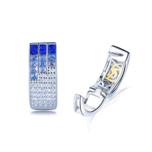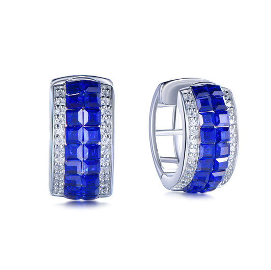 Suzy Levian Sterling Silver Invisible Set Blue White Cubic Zirconia Huggie Earrings