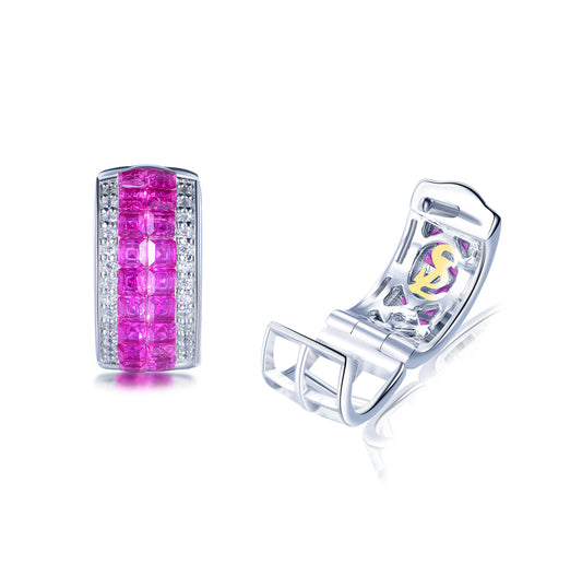 Suzy Levian Sterling Silver Invisible Set Red White Cubic Zirconia Huggie Earrings