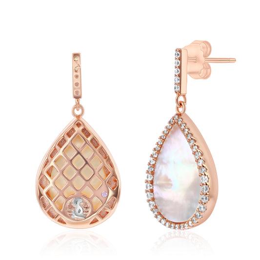 Suzy Levian Rose Sterling Silver White Cubic Zirconia Teardrop Mother of Pearl Dangle Earrings