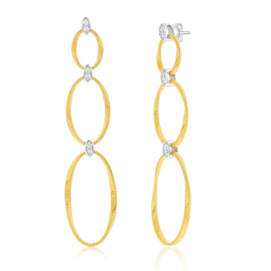 Suzy Levian The Golden Helix Yellow Sterling Silver & White Cubic Zirconia Double Oval Drop Earrings
