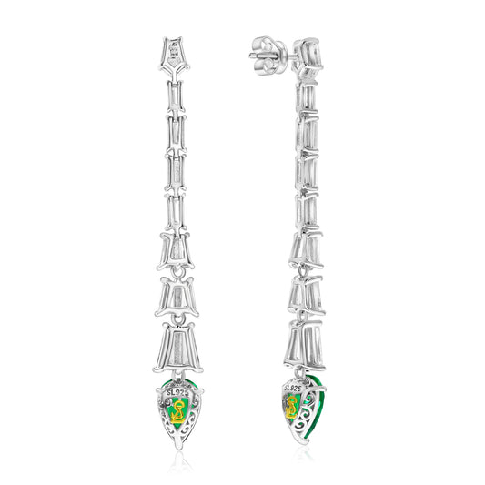 Suzy Levian Sterling Silver Gala Large Pear Shape Green & Multi-Cut White Cubic Zirconia Drop Earrings