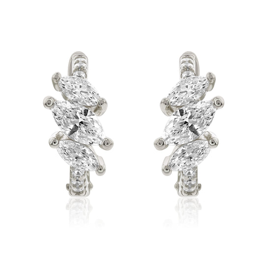 Suzy Levian White Sterling Silver & White Cubic Zirconia Pave Marquise Cut Huggie Hoop Earrings