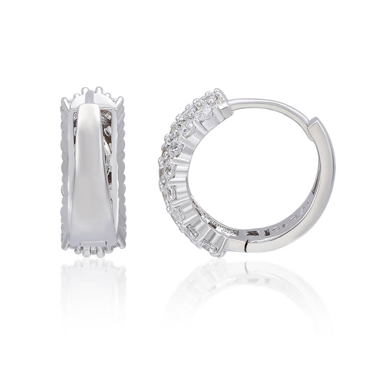Suzy Levian Sterling Silver & White Cubic Zirconia Three Row Huggie Hoop Earrings
