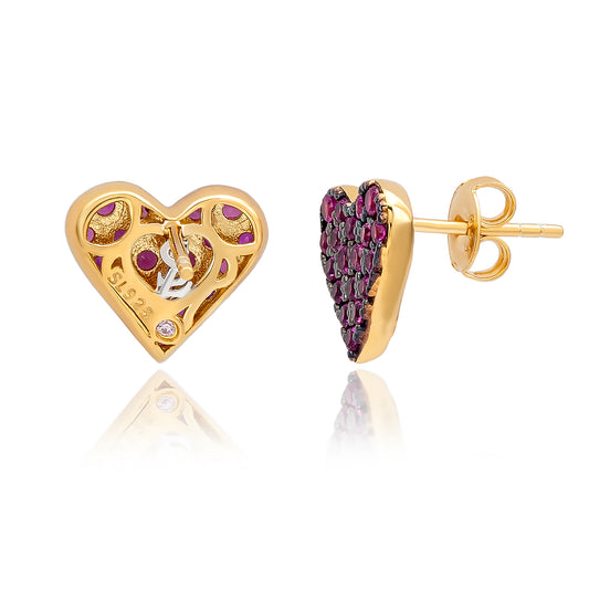 Suzy Levian Yellow Sterling Silver Red Cubic Zirconia Heart Earrings