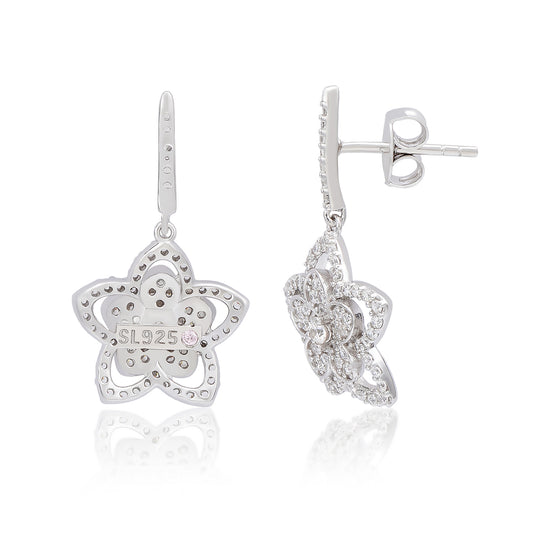 Suzy Levian Sterling Silver White Cubic Zirconia Pave Flower Drop Earrings