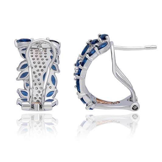 Suzy Levian Sterling Silver Blue Sapphire Created White Sapphire Flower Earrings