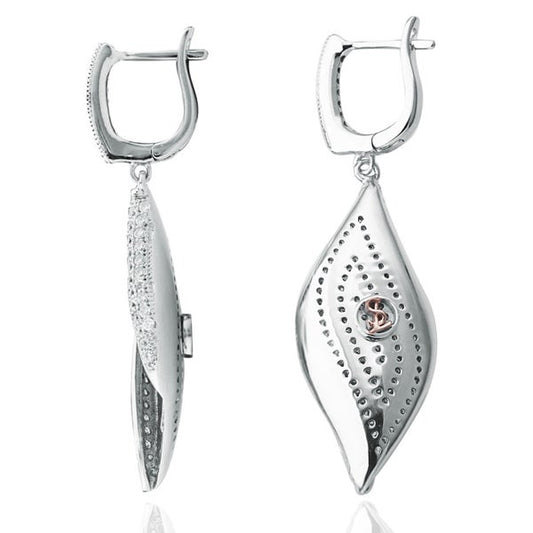 Suzy Levian Rosed Sterling Silver Cubic Zirconia Crossing Drop Earrings