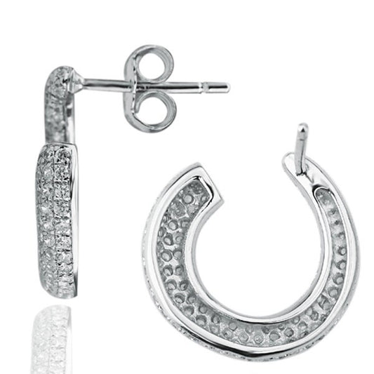 Suzy Levian Sterling Silver Micro Pave Abstract Cubic Zirconia Hoop Earrings