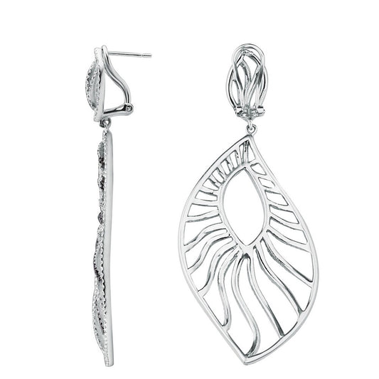 Suzy Levian Pave Cubic Zirconia Sterling Silver Feather Dangle Earrings