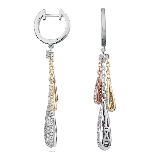 Suzy Levian Pave Cubic Zirconia Tri Tone Sterling Silver Dangle Earrings