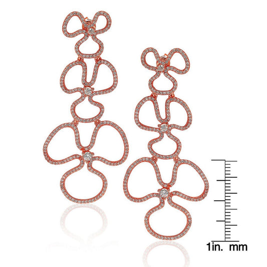 Suzy Levian Rosed Sterling Silver Cubic Zirconia Flower Drop Dangle Earrings