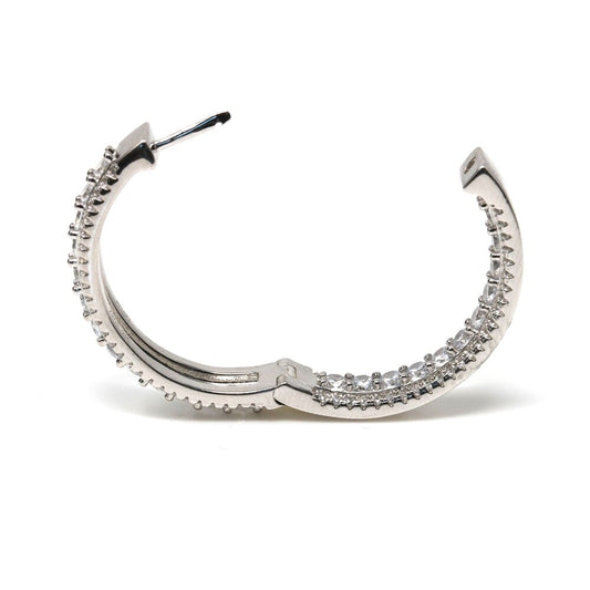 Suzy Levian Sterling Silver White Cubic Zirconia Hoop Earrings