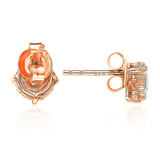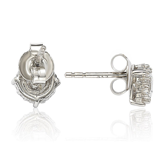 Suzy Levian Rose Sterling Silver White Cubic Zirconia Round Stud Earrings