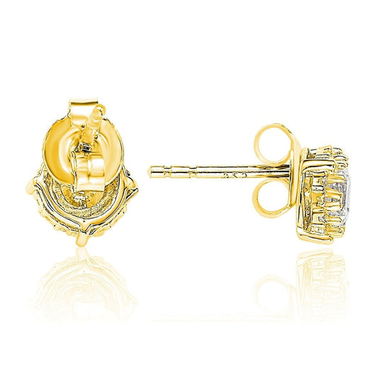 Suzy Levian Yellow Sterling Silver White Cubic Zirconia Round Stud Earrings