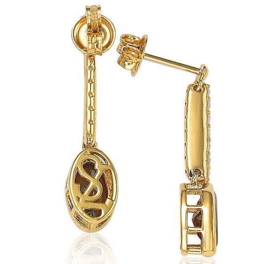 Suzy Levian Rose Plated Sterling Silver Brown Cubic Zirconia Circle Drop Dangle Earrings