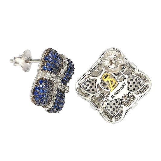 Suzy Levian Sterling Silver Sapphire & Diamond Accent Pave Cluster Earrings