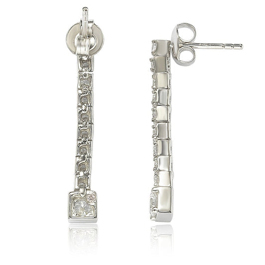 Suzy Levian Sterling Silver Cubic Zirconia White Graduating Line Dangle Earrings