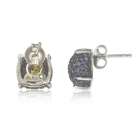 Suzy Levian Sterling Silver Blue and White Sapphire Wrapped Cushion Earrings
