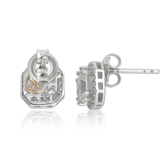 Suzy Levian Sterling Silver White Cubic Zirconia Cushion-Cut Halo Stud Earrings
