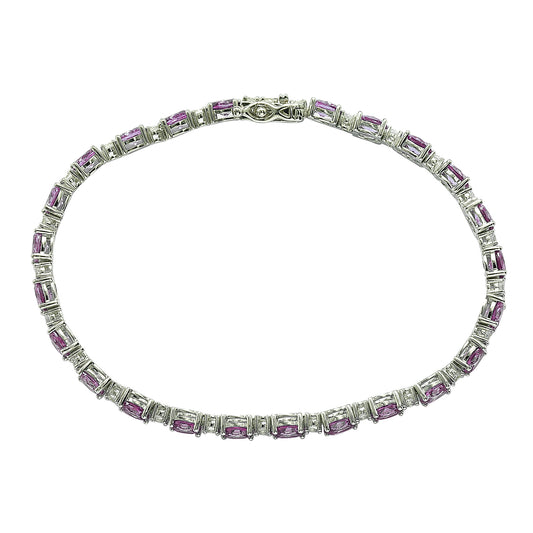 Suzy Levian Sterling Silver Oval-Cut Pink Sapphire Tennis Bracelet