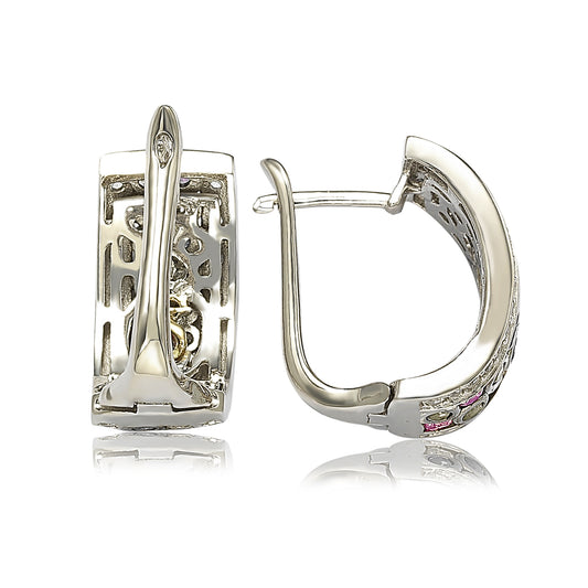 Suzy Levian Sterling Silver Pink Sapphire and Diamond Accent Earrings
