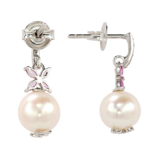 Suzy Levian Sterling Silver Pearl & Pink Sapphire Floral Earrings