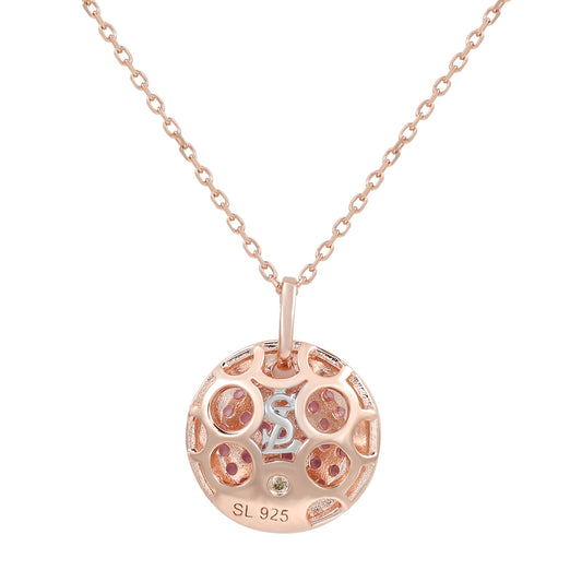Suzy Levian Pink Sapphire Rose Sterling Silver Pave Circle Disc Pendant