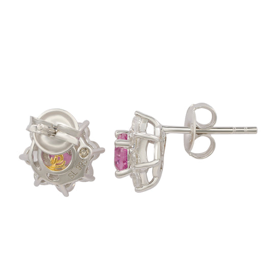 Suzy Levian Sterling Silver Pink Sapphire Flower Halo Stud Earrings