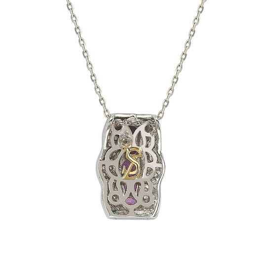 Suzy Levian Sterling Silver Pink Sapphire and Diamond Accent Wavy Pendant