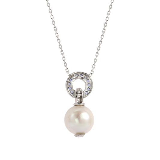 Suzy Levian Sterling Silver Pearl & Blue Sapphire Classic Circle Pendant