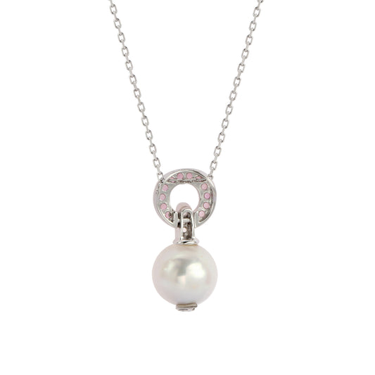 Suzy Levian Sterling Silver Pearl & Pink Sapphire Classic Circle Pendant