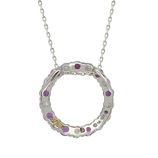 Suzy Levian Sterling Silver Pink Sapphire & Diamond Accent Alternating Circle Eternity Necklace