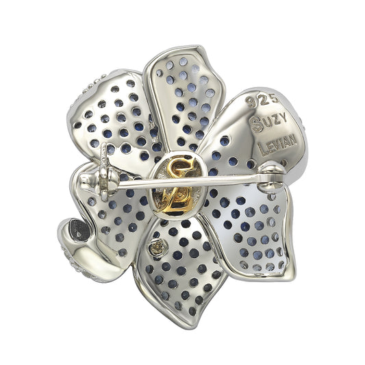 Suzy Levian Sterling Silver Sapphire & Diamond Accent Flower Petal Brooch