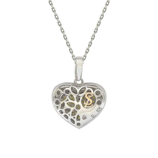 Suzy Levian Yellow Sapphire Sterling Silver Pave Heart Pendant