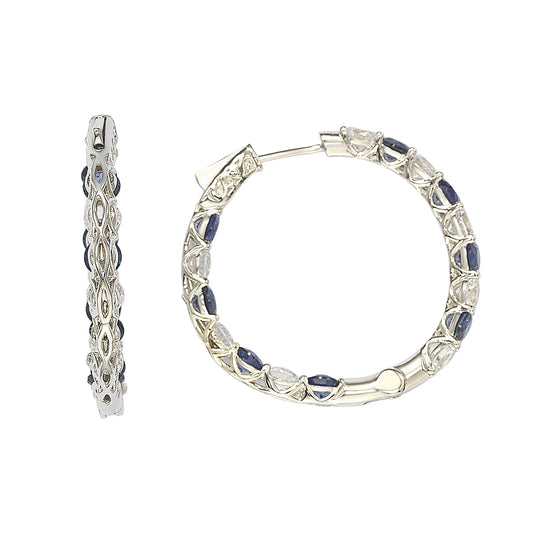 Suzy Levian Sterling Silver Blue Sapphire Crossing Hoop Earrings