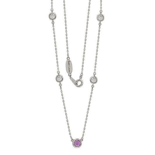 Suzy Levian Pink Sapphire & Diamond Accent (1.50cttw) Sterling Silver 5 Stone Station Necklace