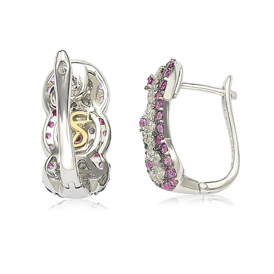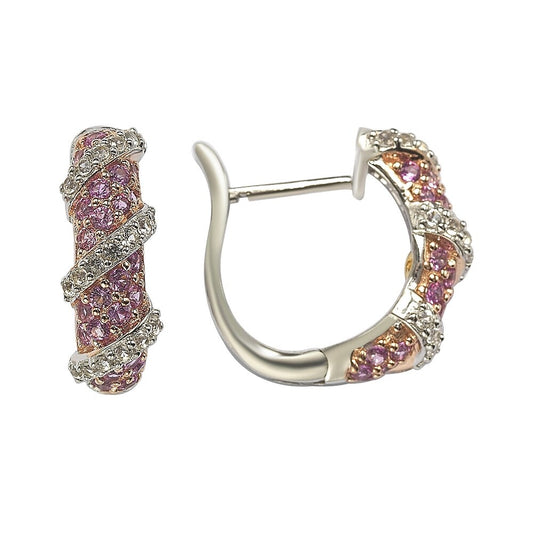 Suzy Levian Pink Sapphire and Diamond in Sterling Silver Earrings