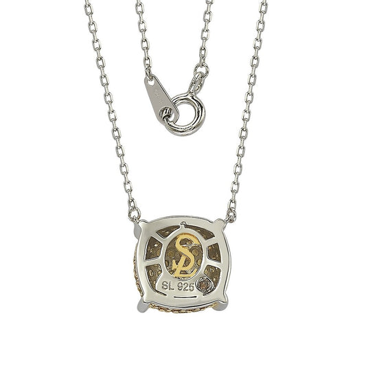 Suzy Levian Sterling Silver Yellow & Diamond Accent Pave Cluster Necklace