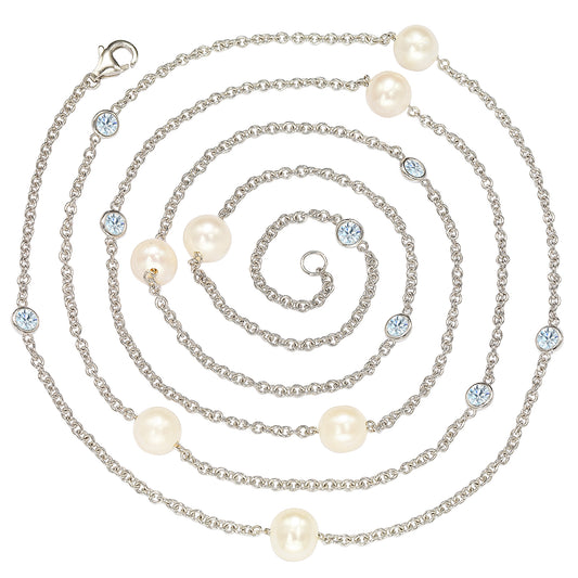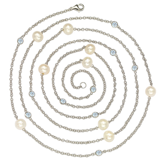 Suzy Levian Sterling Silver White Sapphire and Pearl By-the-Yard 46" Station Necklace