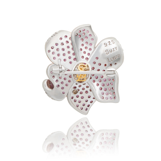 Suzy Levian Sterling Silver Pink Sapphire & Diamond Accent Flower Petal Brooch