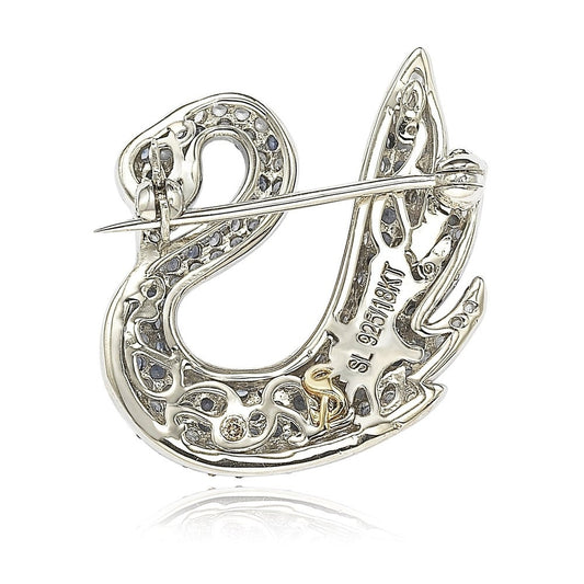 Suzy Levian Sterling Silver Blue and White Sapphire Swan Brooch