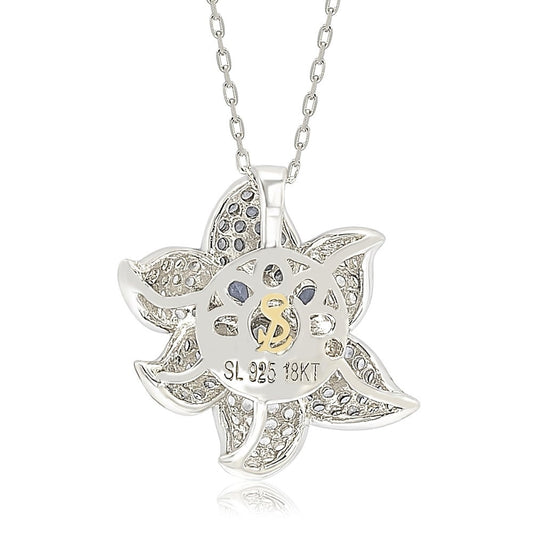 Suzy Levian Sterling Silver Sapphire and Diamond Accent Exotic Flower Pendant Necklace