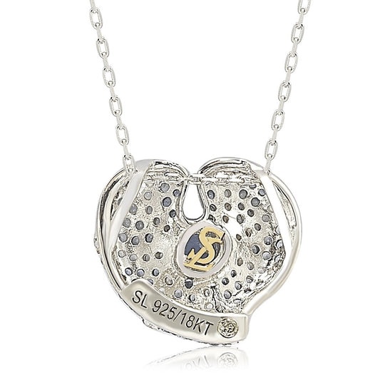 Suzy Levian Sterling Silver Sapphire and Diamond Accent Whimsical Heart Pendant Necklace